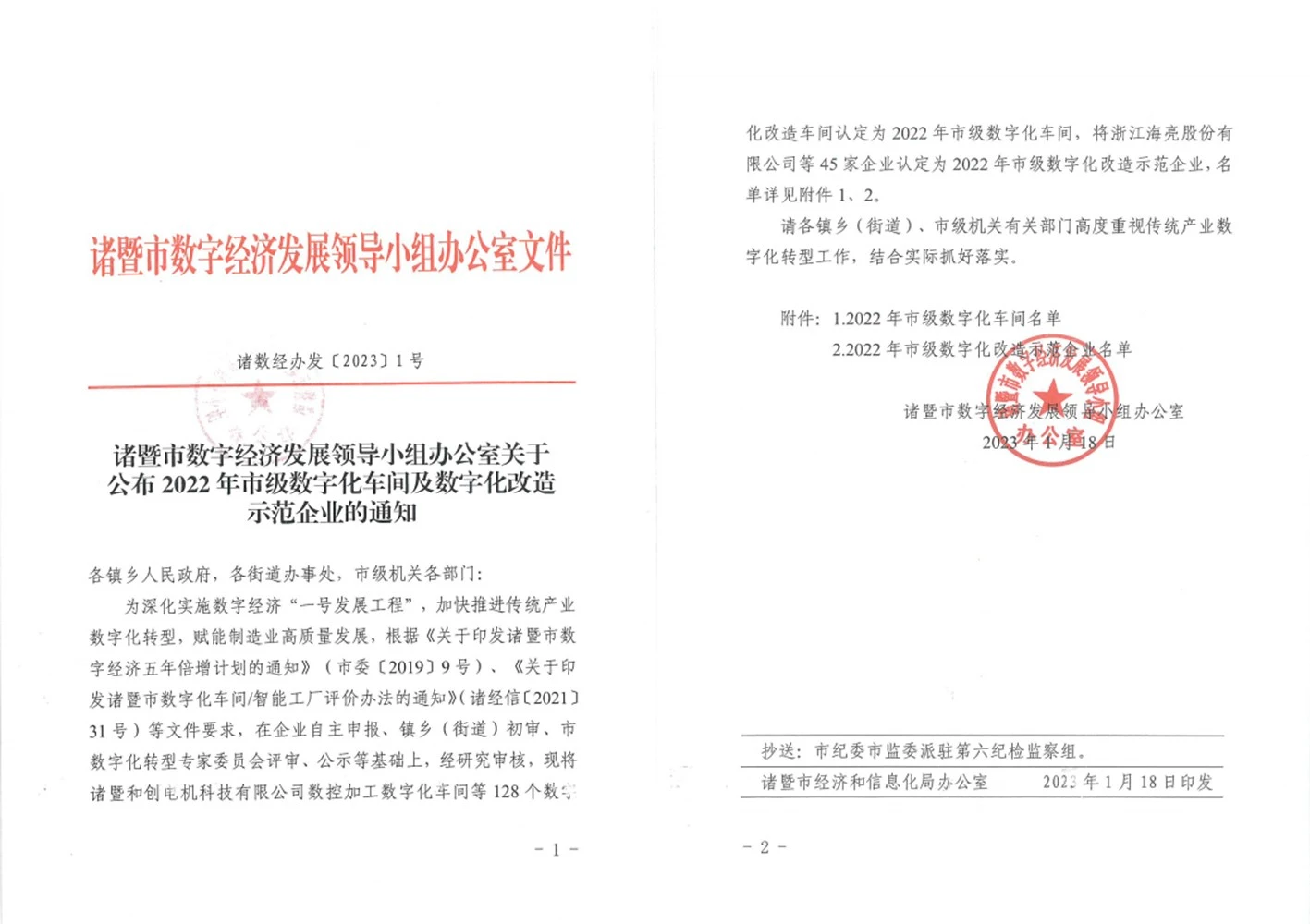 On January 18, 2023, according to the requirements of "Notice on the Issuance of the Five-Year Multiplication Plan of Zhuji Digital Economy" (Municipal Committee [2019] No. 9) and "Notice on the Issuance of Evaluation Methods of Zhuji Digital Workshop/Smart Factory" (Zhuji Economic and Information Bureau [2021] No. 31), through the basic process of enterprise self-declaration, preliminary examination by townships (streets), evaluation by the municipal digital transformation expert committee and public announcement, Zhuji Hiest Motor Co., Ltd. was awarded the title of "2022 Municipal Digital Workshop and Digital Transformation Demonstration Enterprise".